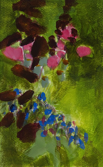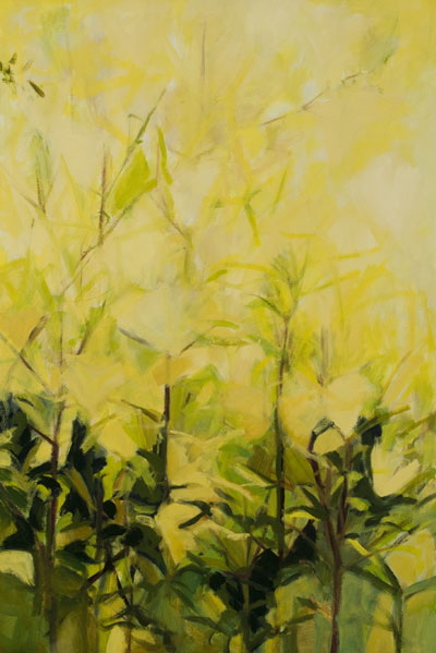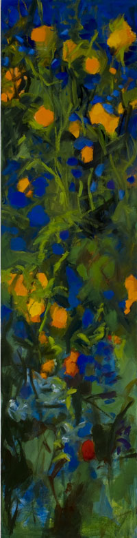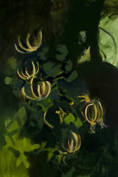Des toiles puissantes dans leur verticalité, une présence à la fois étrange et familière, l’arbre comme hôte amical et indéchiffrable: c’était, en 2005, l’exposition «Le sentiment de la forêt». Aujourd’hui, Marie Desbarax s’avance, sortie du tronc, des lignes, de la structure altière, au risque, selon ses propres mots, de l’explosion, de la danse. «Etre dans la plante», dit-elle. Fleurs de l’enfance, mémoire d’un jardin de grand-mère que réactive chaque plante sauvage rencontrée par la femme qui, aujourd’hui, se promène et regarde. Expressionnistes, lyriques, à la limite de l’abstraction, ses ronces, digitales, chèvrefeuilles, reines des prés, aubépines, coquelicots, baies de sorbier témoignent d’une volonté d’introspection que l’ombre, toujours présente, confirme. Comme si l’énergie du geste et de la couleur, qui constitue l’épine dorsale de l’œuvre, était en permanence sous-tendue par une basse continue qui n’est ni nostalgique ni tragique: c’est la musique même du travail quotidien, trouée par endroits d’une larme de jaune, d’un rouge plus vif qu’un cri. Les fleurs sont belles et leur perfection, pour l’artiste, est un piège. Dans ce piège, chaque matin, elle se place, grande devant ses grandes toiles, la nuque légèrement ployée, pour accueillir la vulnérabilité du monde et la question qui nous hante: que cache, que nourrit, que dévoile la beauté ?Caroline Lamarche