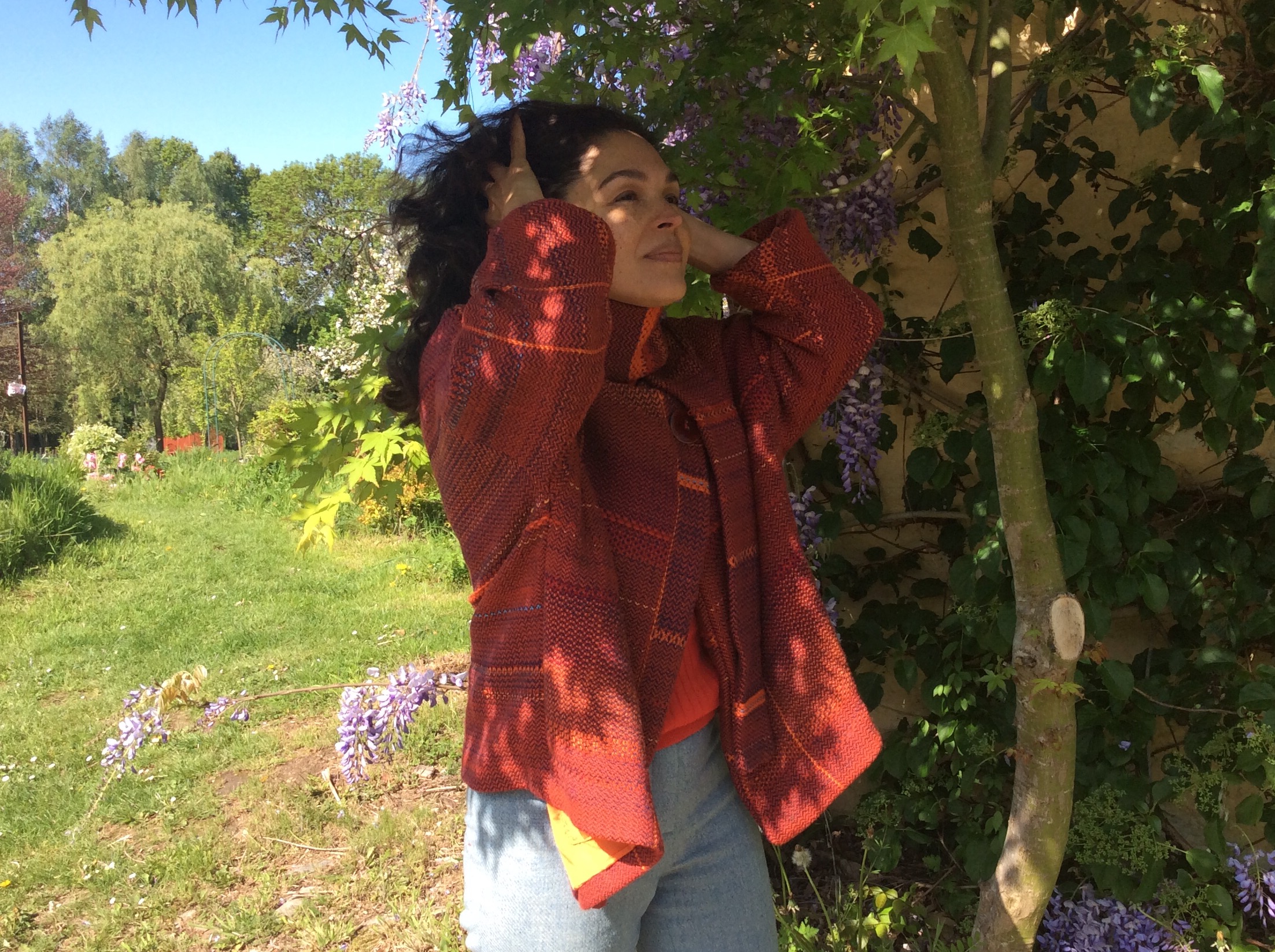 De la peinture à l’étoffe Veste Catherine Veste François couverture de yoga couverture Franzi veste de Karen Parure Kimono Echarpe Echarpe pull Marie veste de Jacqueline Châle en soie et alpaga couverture Franzi